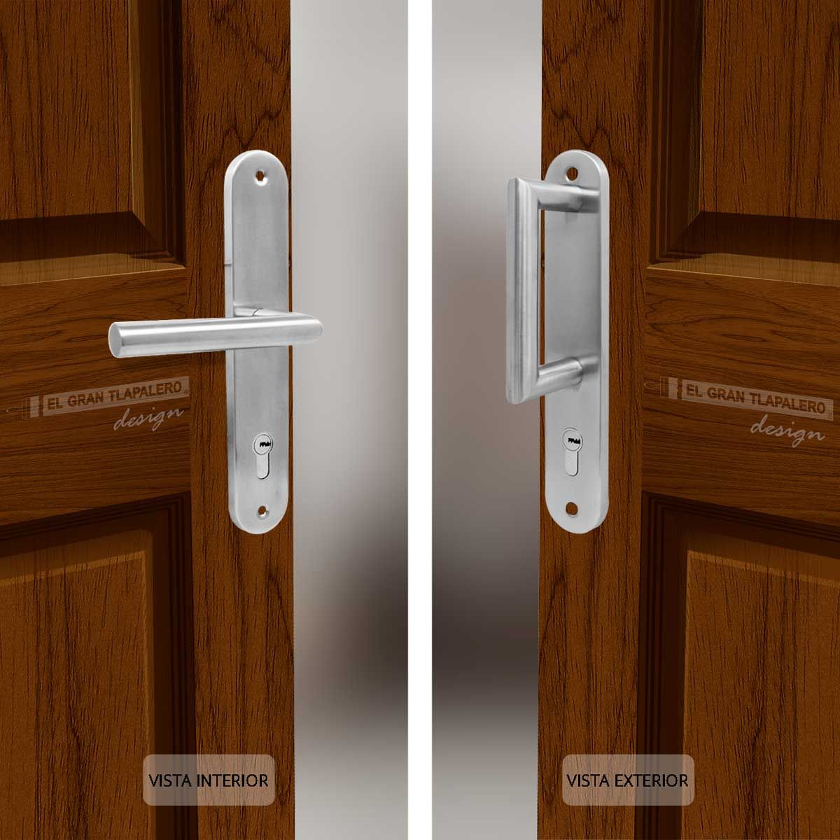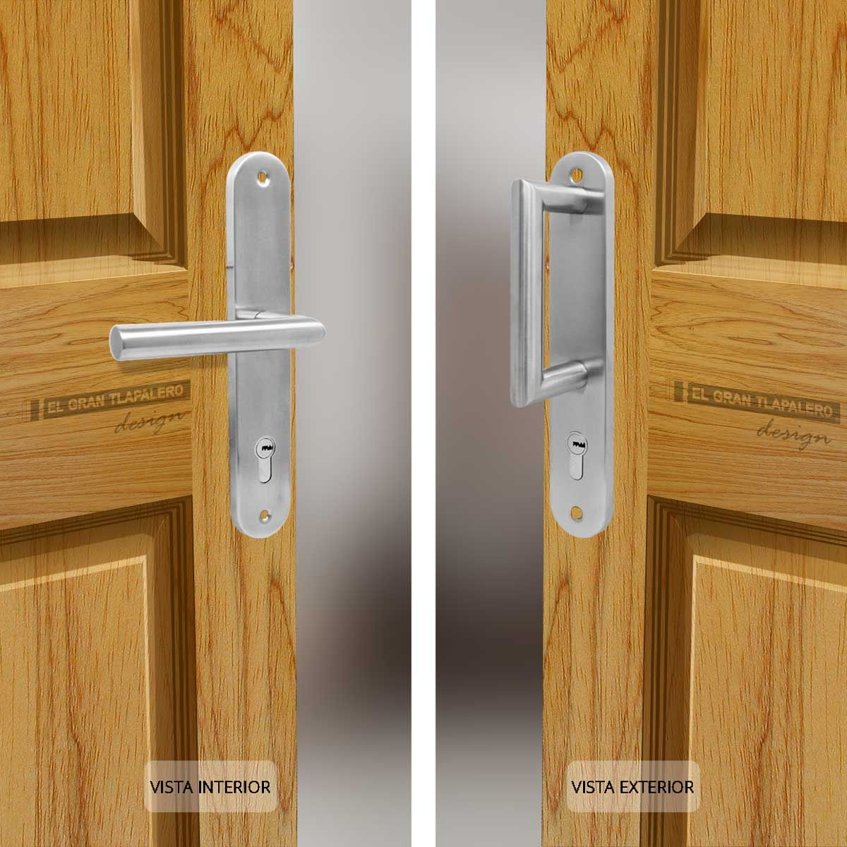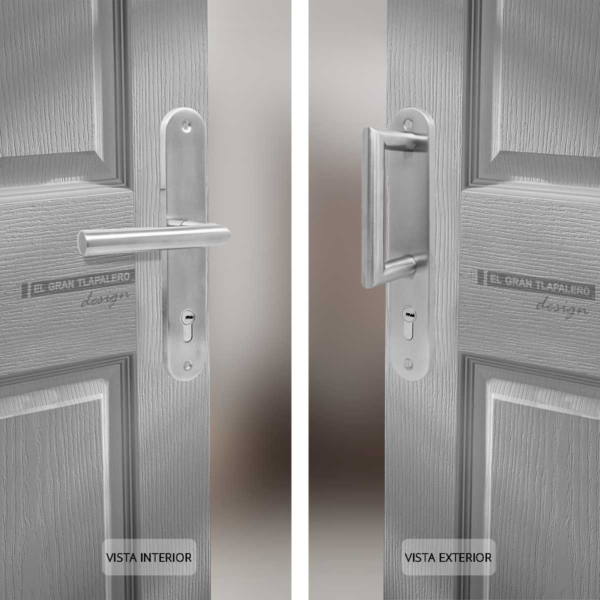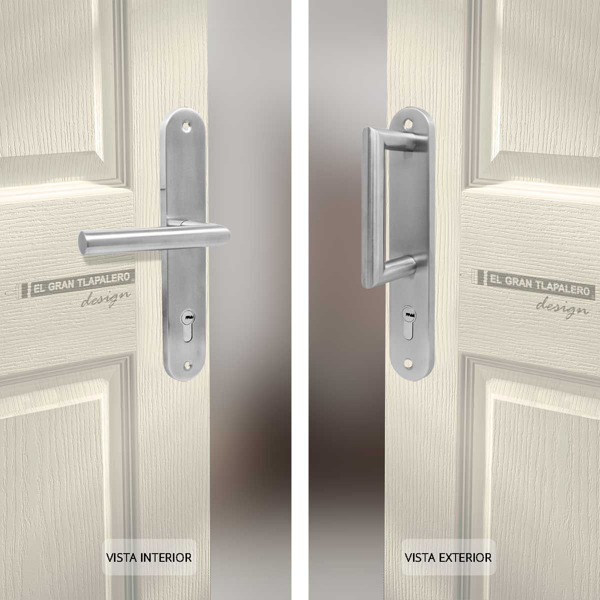 • Placa y manija de acero inoxidable.