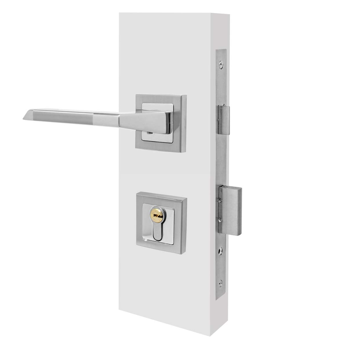 • Cerradura con mecanismo de embutir de 2 pasos, con pestillo y pasador.