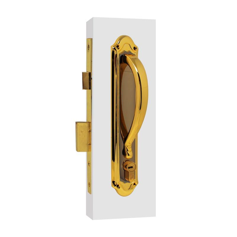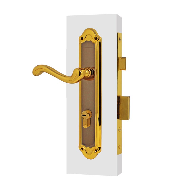 • Manija de latón sálido con cerradura de embutir.