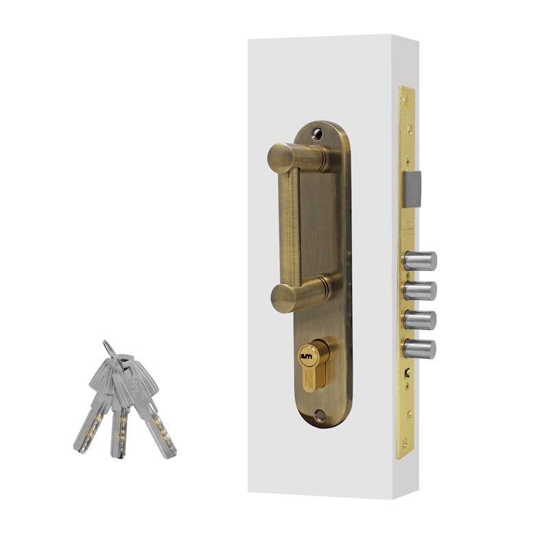 Cerradura para entrada principal izquierda latón antiguo Hermes Tesa