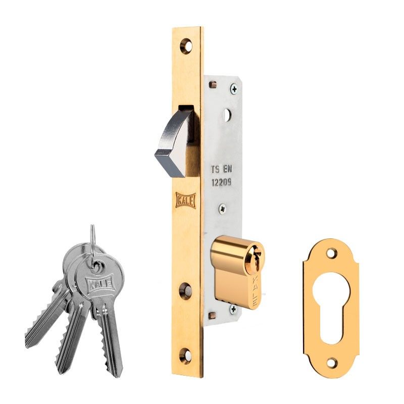 Mecanismo de embutir de gancho con cilindro estandar latón brillante 201-20 Kale Kilit