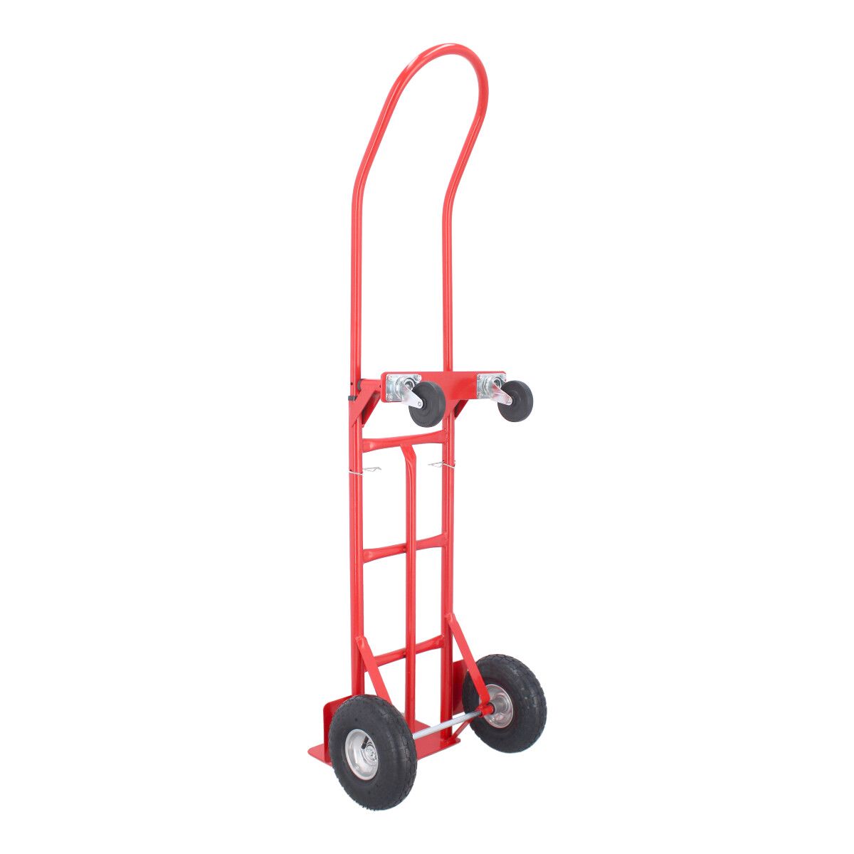 • Llanta trasera giratoria de hule sólido.