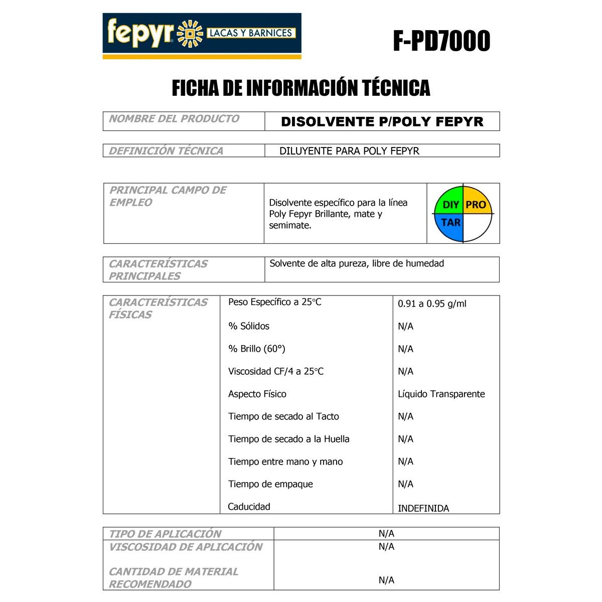 • Disolvente específico para la línea Poly Fepyr Brillante, mate y semimate.