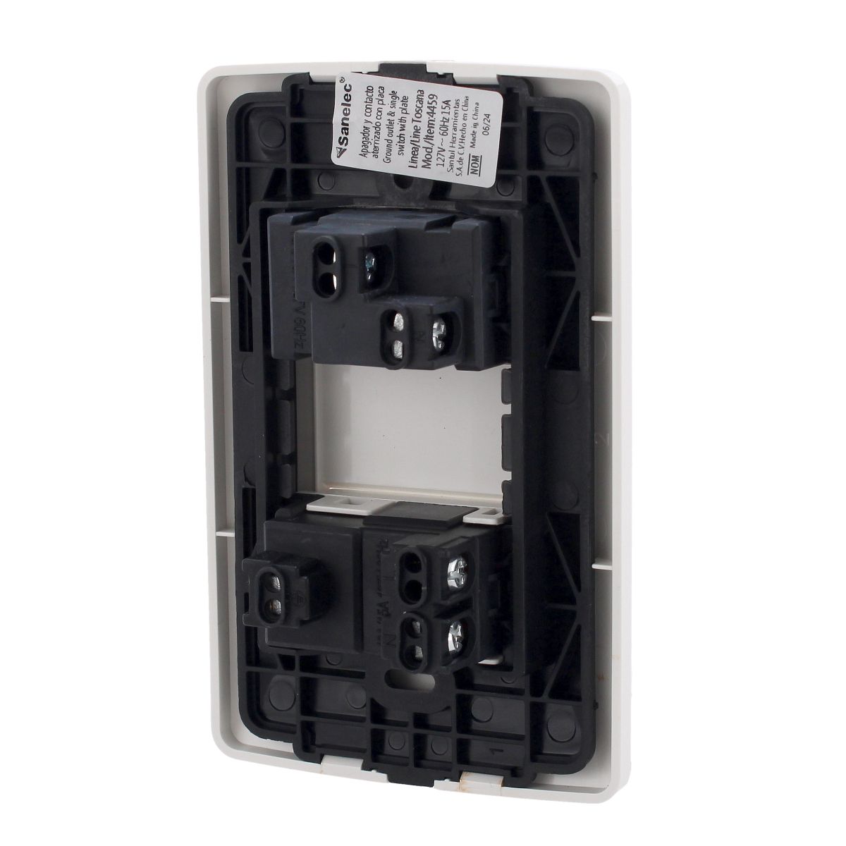 Placa con apagador y contacto línea Toscana 4459 Sanelec