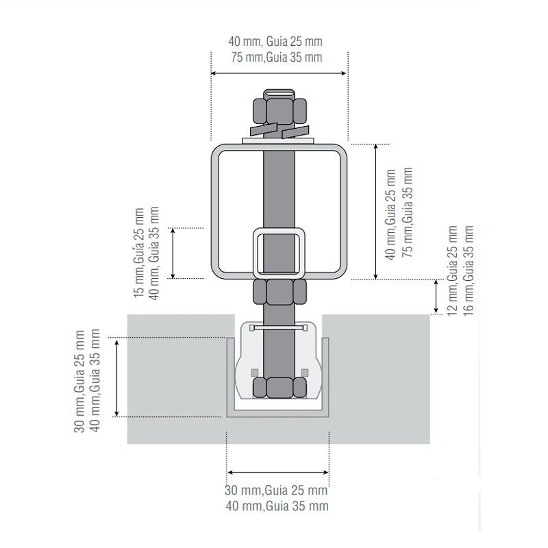 • Para fijación en perfiles de 40 a 75 mm de alto con guía GP-35.