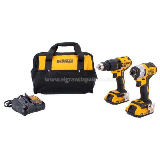 • Incluye: Taladro percutor DCD778, Atornillador de impacto, DCF887, 2 Baterías de ION de litio (2.0 Ah) 20 V MAX* DCB203, Cargador y Maleta de tela.