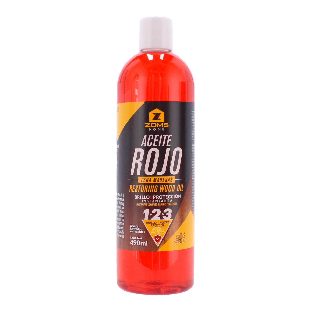 • El aceite rojo ZOMS, es un aceite de alto desempeño eficaz para limpiar cualquier superficie de madera, formica y me la mina, para puertas, marcos, muebles y ventanas.