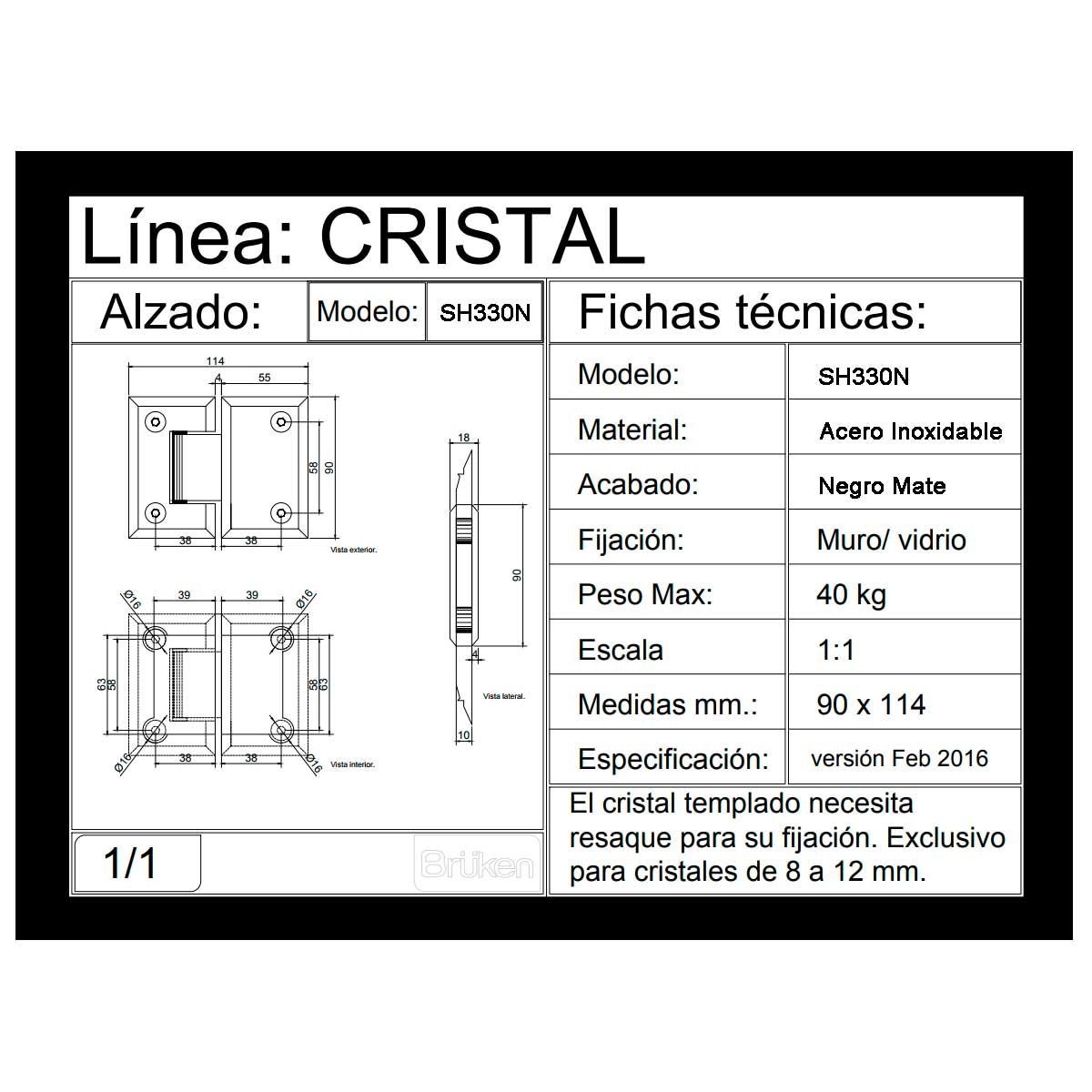 • Especificaciones: el cristal necesita resaque para su fijación.