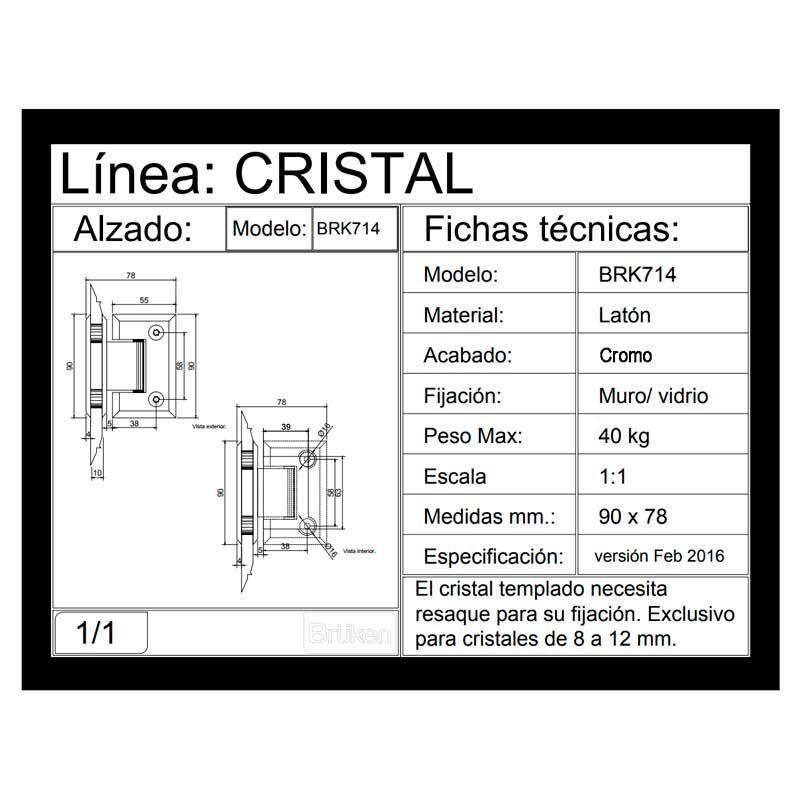 Bisagra vidrio-vidrio a 90° cromada BRK714 Bruken