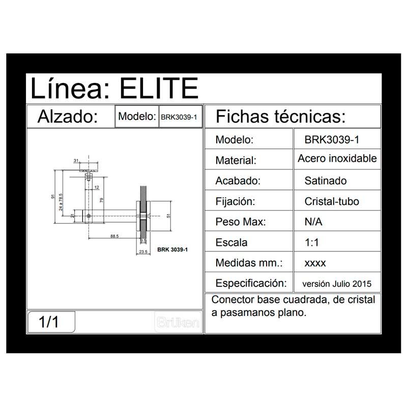 Conector base cuadrada de muro a pasamanos plano BRK3038-1 Bruken