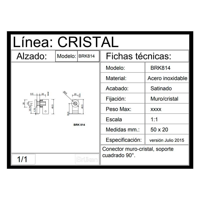 Conector muro-vidrio 90° BRK814 Bruken