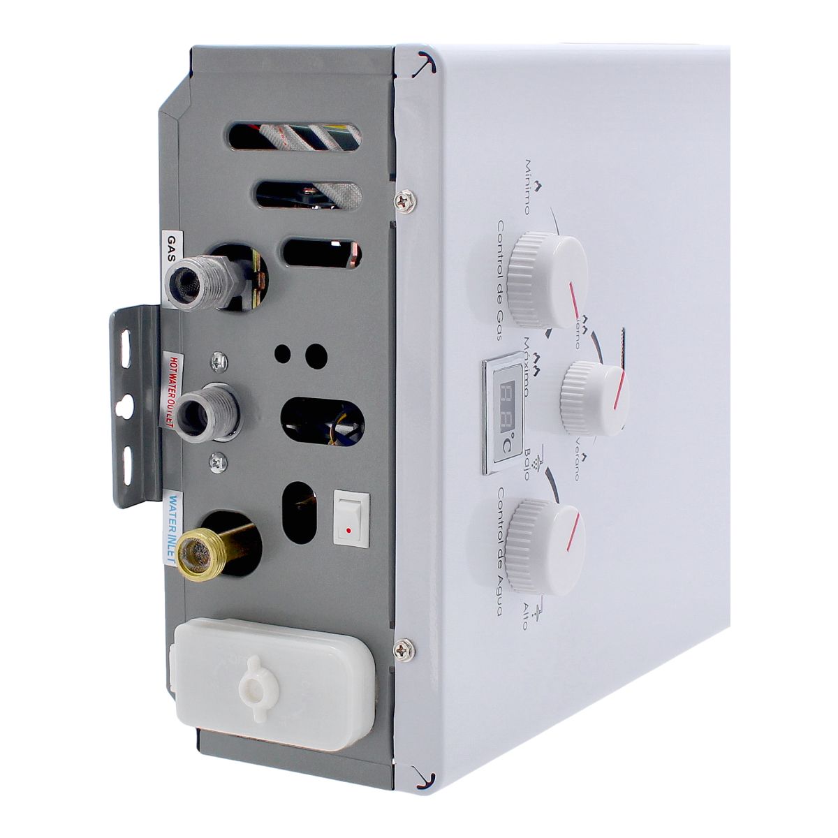 • Tres perillas de ajuste de preferencias (control de temperatura flujo de gas y flujo de agua).