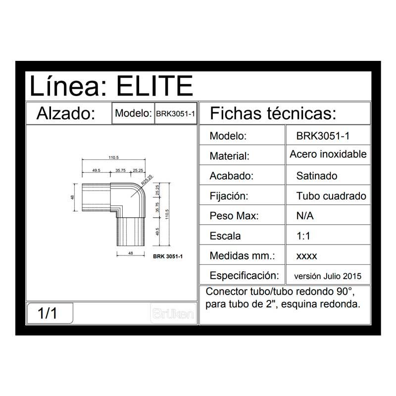 Conector tubo / tubo de 90° esquina redonda BRK3051-1 Bruken