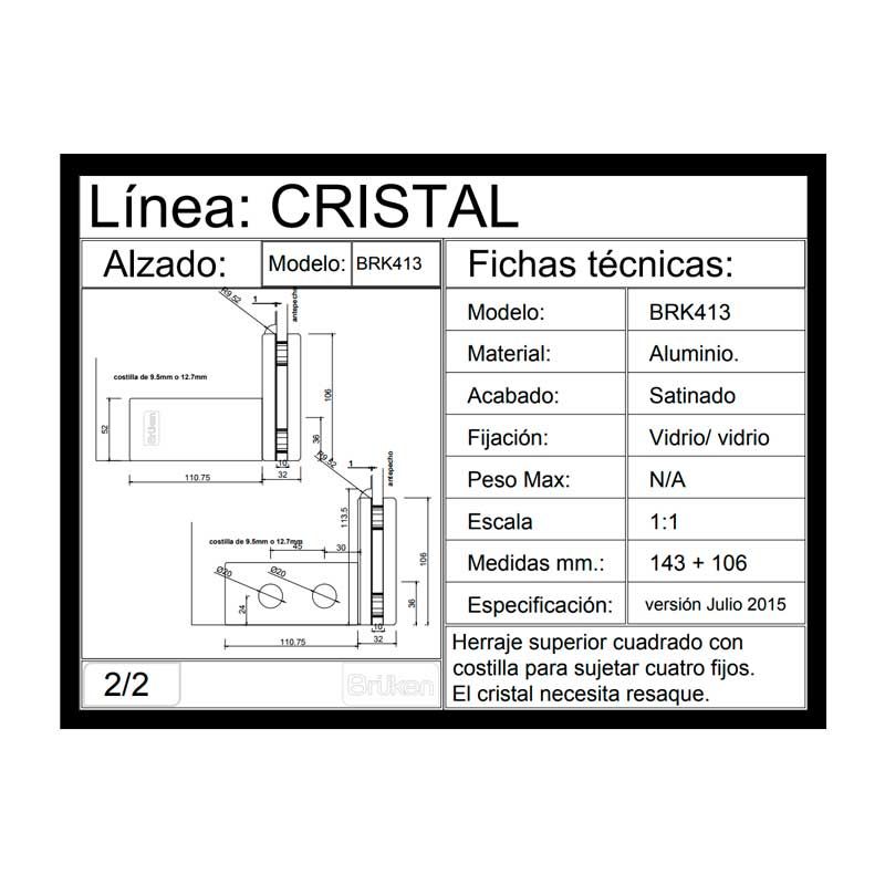 Herraje superior cuadrado BRK413 Bruken