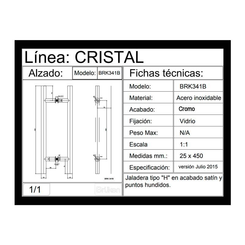 HE225 Jaladera tipo "H" para puertas de cristal cromo BRK341B Bruken
