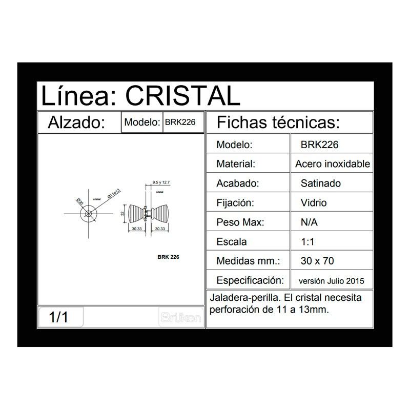 Perilla para puerta de cristal satinada BRK226 Bruken