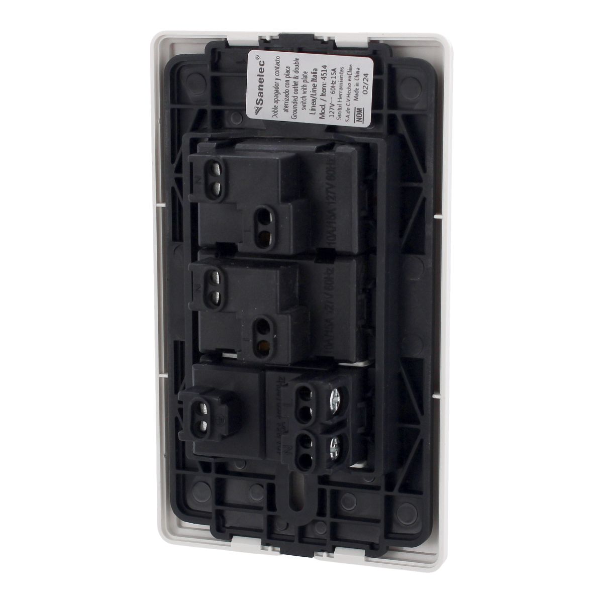 Placa con 2 apagadores y 1 contacto línea Italia 4514 Sanelec Placa con 2 apagadores y 1 contacto línea Italia 4514 Sanelec