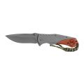 • Tiene una hoja plegable en el mango y está diseñada para cortar elementos sin problemas. Esta navaja de camping tiene un mango de acero inoxidable, revestimiento de titanio y madera.