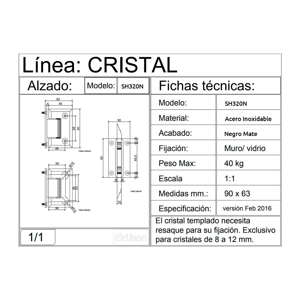 • Especificaciones: el cristal necesita resaque para su fijación.