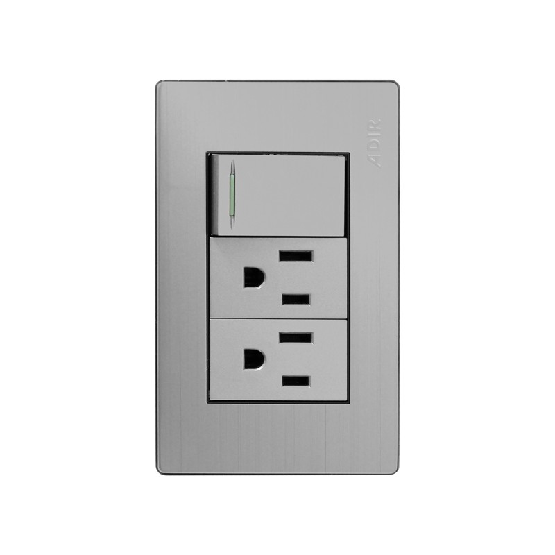 Placa con apagador sencillo y 2 contactos acero inoxidable 4676 Adir