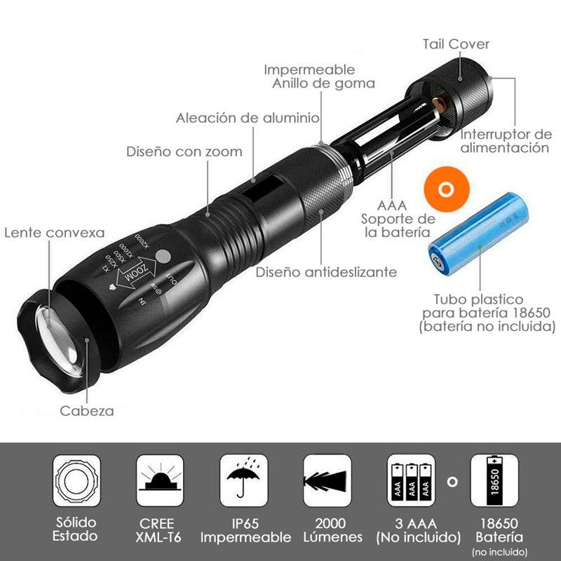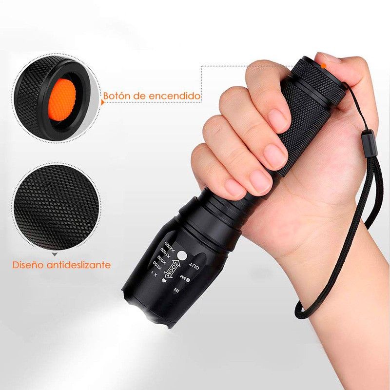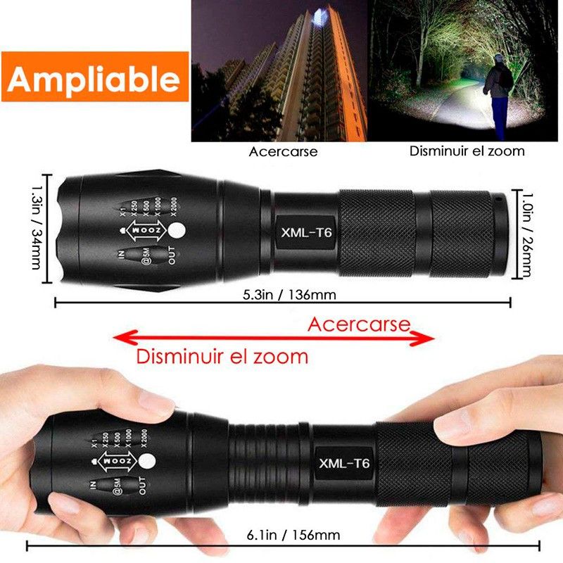 • Super brillante: Utiliza la actualización LED chip, un controlador de iluminación inteligente y circuito integrado dedicado que asegura que la linterna sea más brillante que otras.