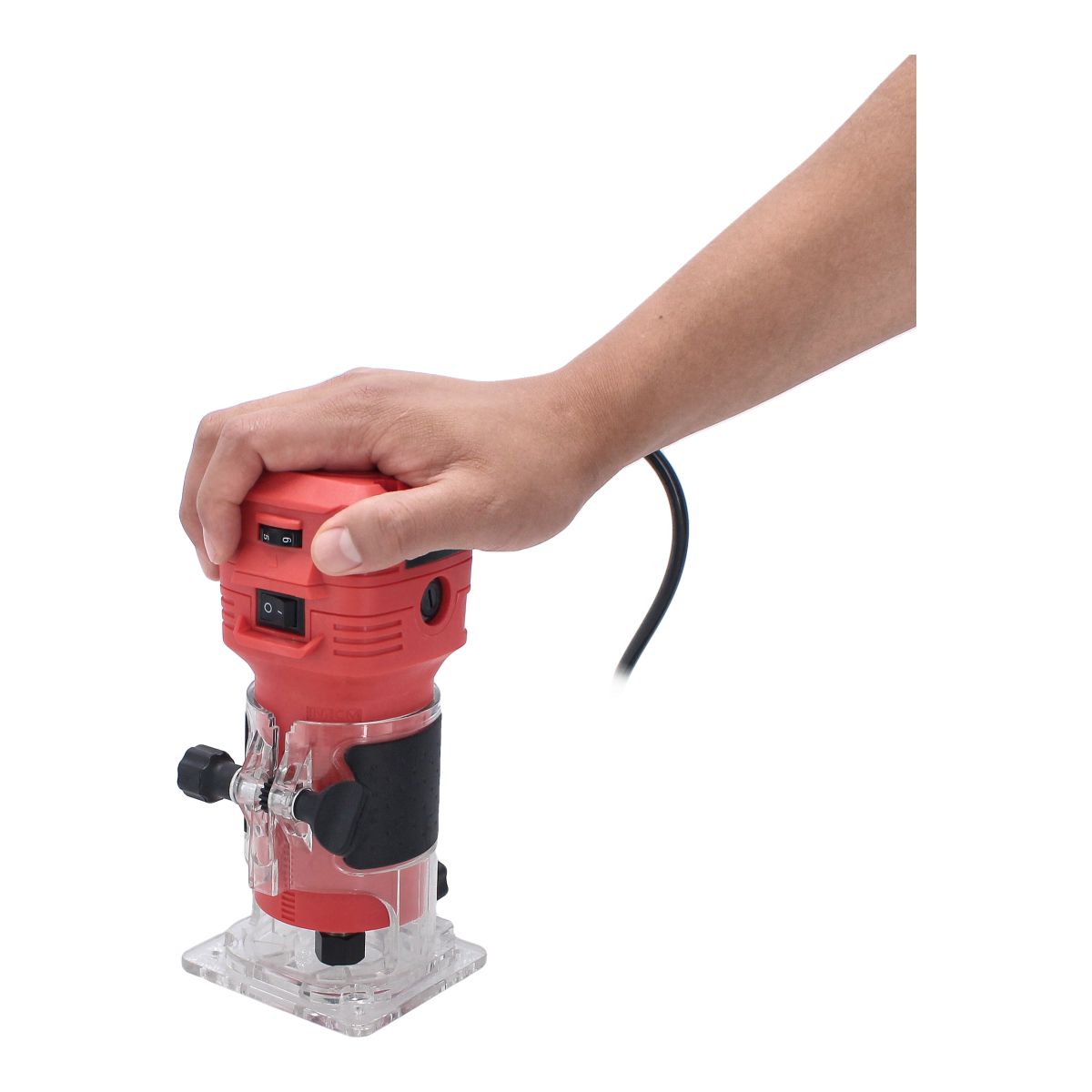 • Incluye: Guía de borde recto, guía de cojinete de rodillo, guía de plantilla, 2 llaves, cortador de fresado recto sin cojinete y 12 brocas.