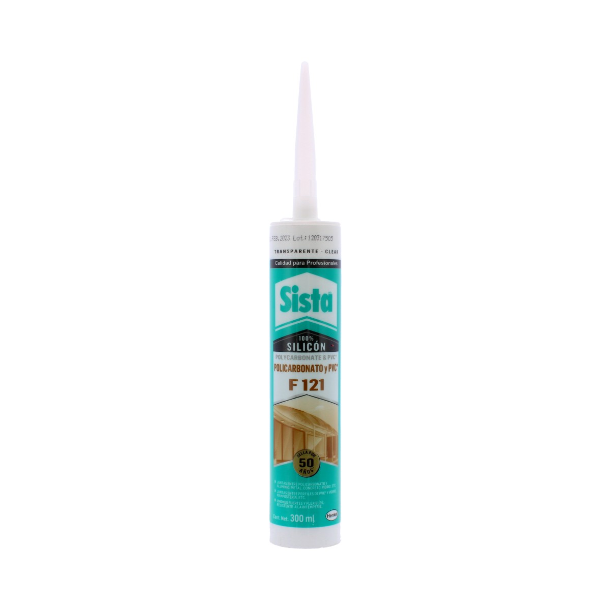 Silicón transparente para policarbonato y PVC F121 Sista