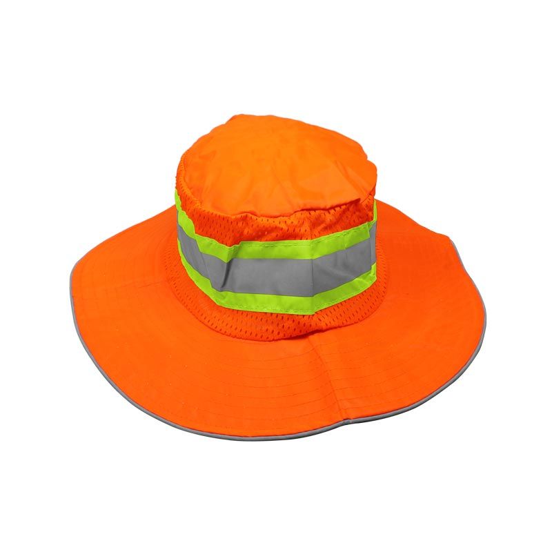 • Sombrero tipo explorador de alta visibilidad con tira reflejante gris.